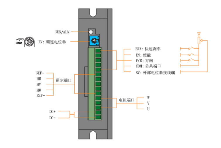 產品易使用、快上手。 自帶電位器可調速 接上開關、就可以實現正反轉、啟停、剎車 |